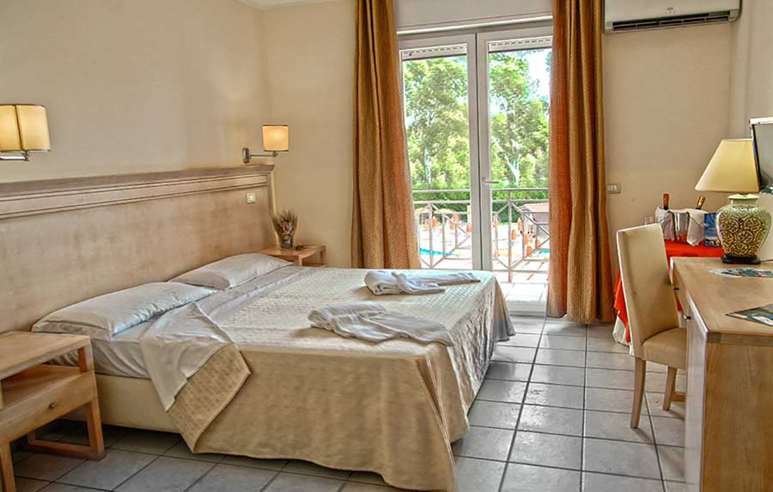 Tutte le camere standard affacciano lato collina e sono a piano terra, primo o secondo piano. Le camere superior prevedono la sistemazione lato piscina, telo mare per ogni partecipante, ombrellone spiaggia in 1° fila per le superior 1 (primo piano) ed in 2° fila per le superior 2 (secondo piano). I primi a prenotare avranno terrazzo di coperto di 9 mq. (Offerta Prenota Prima a disponibilità limitata).