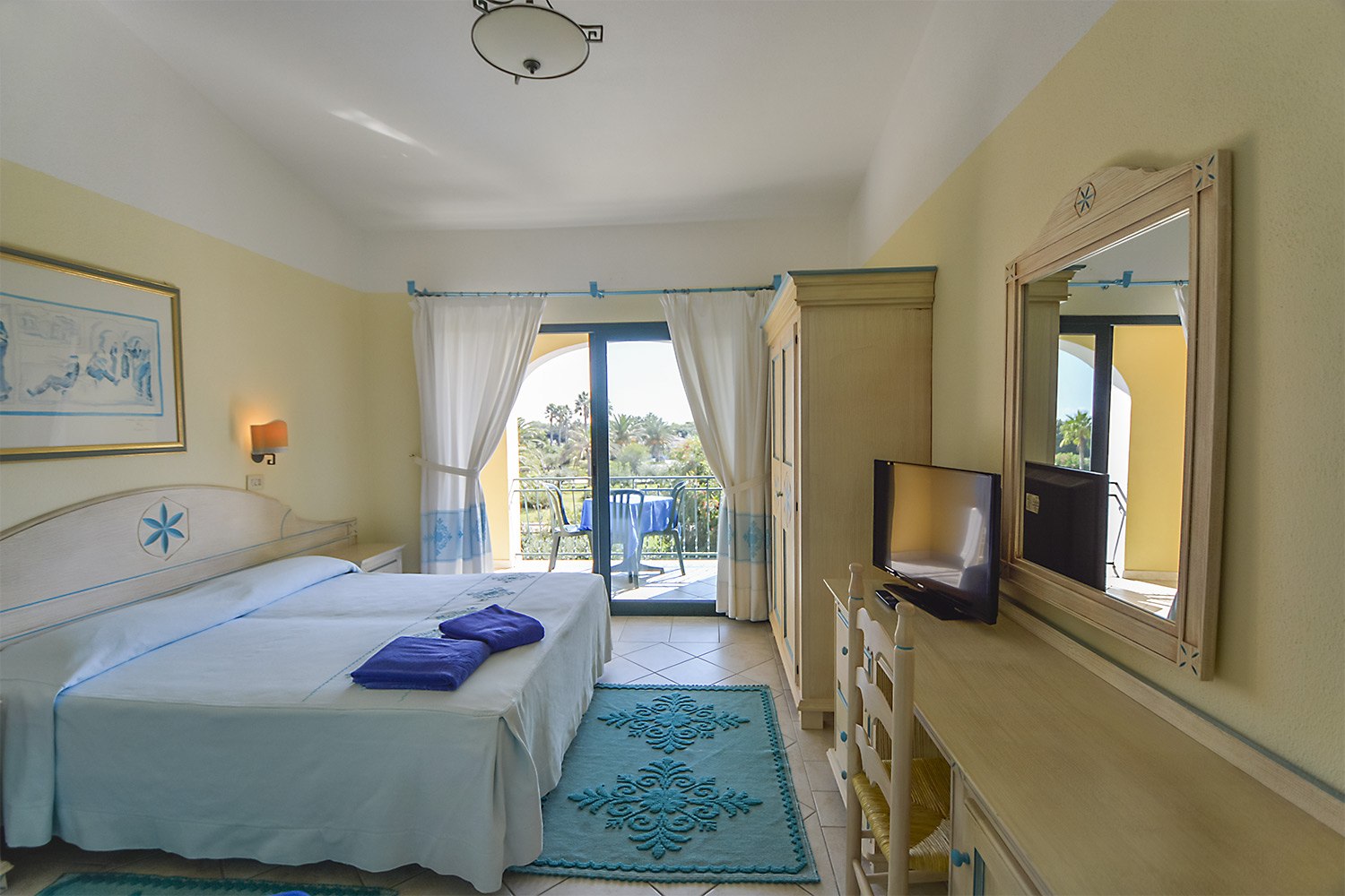 430 Camere Doppie: con letto matrimoniale o due letti singoli; Triple: con letto matrimoniale e 1 letto aggiunto; Quadruple: con letto matrimoniale con 2 letti aggiunti. Tutte arredate in tipico stile sardo, dotate di veranda coperta, servizio privato con asciugacapelli, telefono, aria condizionata/riscaldamento, TV color, cassetta di sicurezza e frigobar.