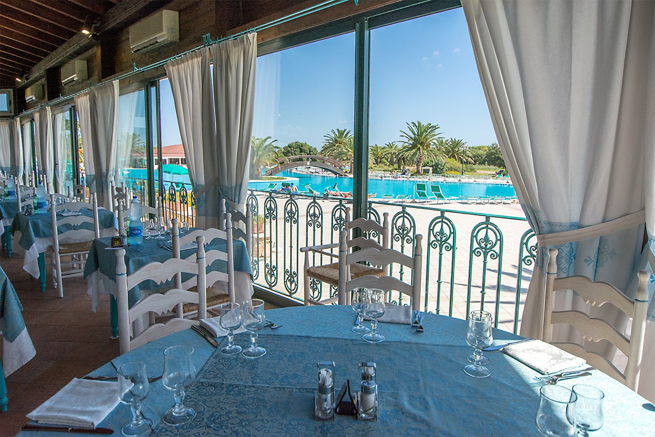 Il Ristorante: Ristorante Centrale – prima colazione a buffet; pranzo e cena, serviti a tavola e/o a buffet, con ricchi menu della cucina tipica sarda e nazionale, composti da antipasti, primi e secondi piatti, contorni, frutta e dessert. Ristorante Pagoda – su prenotazione, con servizio a buffet e show cooking.