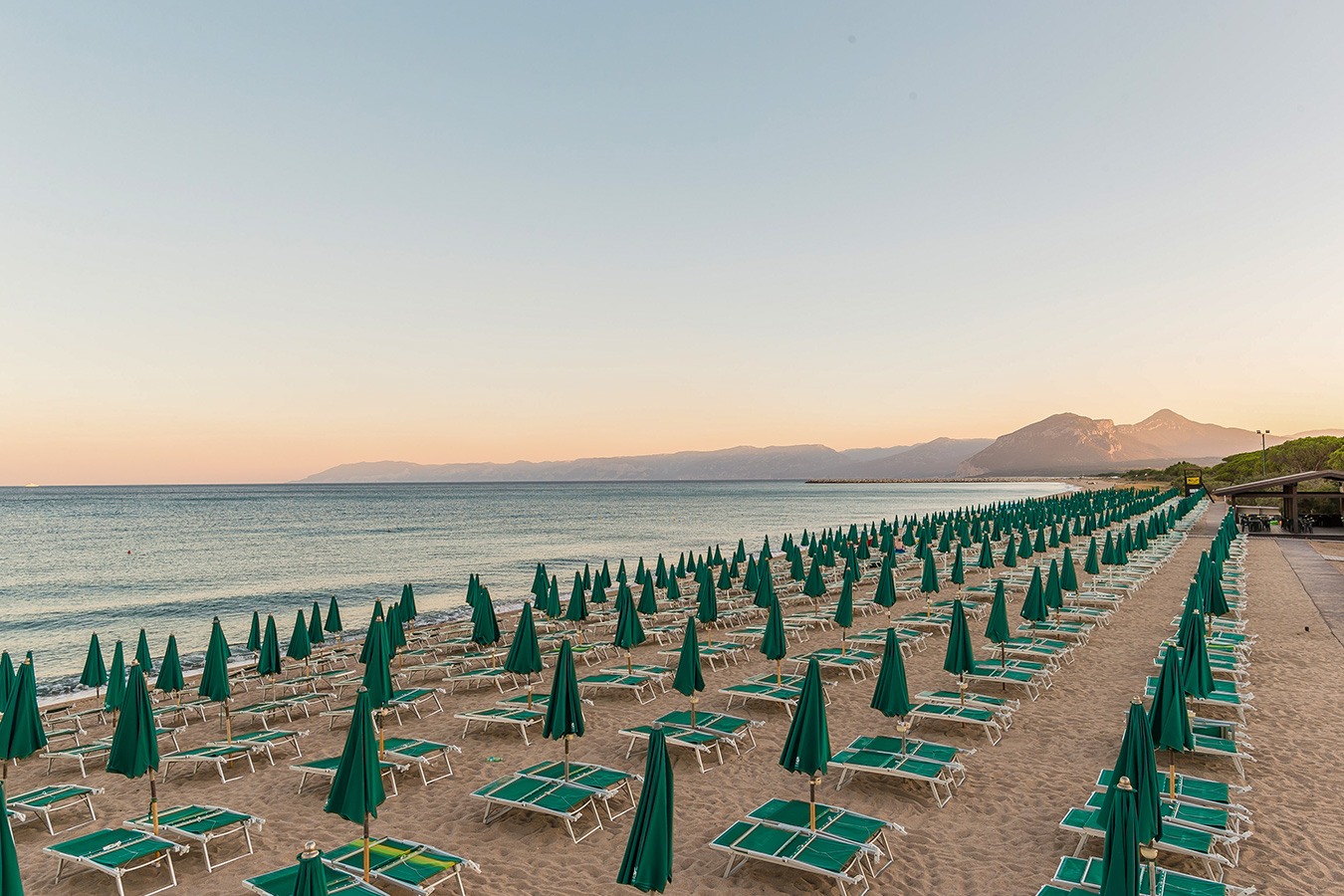 La Spiaggia: ampia, lunga diversi chilometri, a soli 100 mt dal giardino dell’albergo, attrezzata con ombrelloni e lettini (prima e seconda fila, su prenotazione, da pagarsi in loco al momento dell’arrivo), raggiungibile mediante i vialetti interni, pedonali, fioriti, privi di barriere architettoniche.